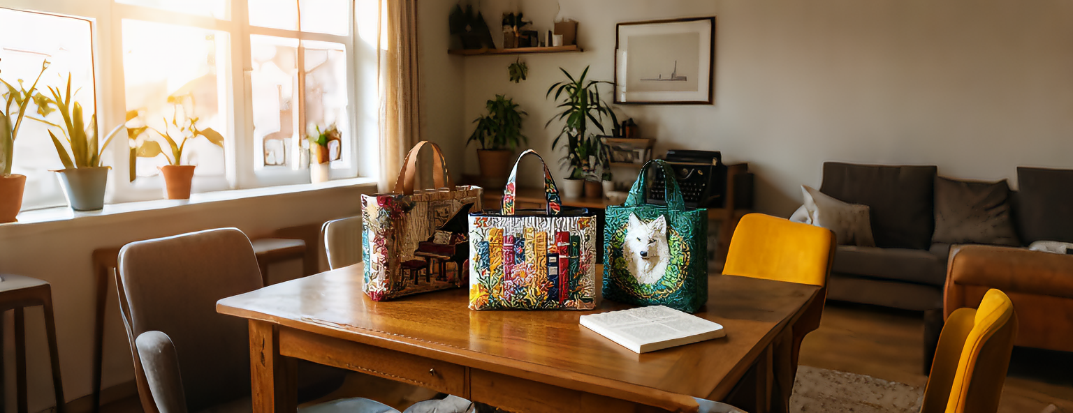 Books and Flowers Collection Quilted Tote Bag
